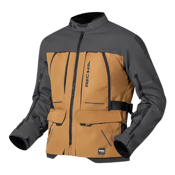 De jas is opgebouwd uit hoog slijtvast Cordura/polyamide in combinatie met stretch-inzetstukken, wat zorgt voor een comfortabele, veilige pasvorm en optimale bewegingsvrijheid. Dankzij het Richa ACS-ventilatiesysteem met grote afsluitbare ventilatiepanelen aan de voor- en achterkant én een volledige tweewegs armventilatierits, geniet je van gerichte luchtstroom tijdens warme ritten.